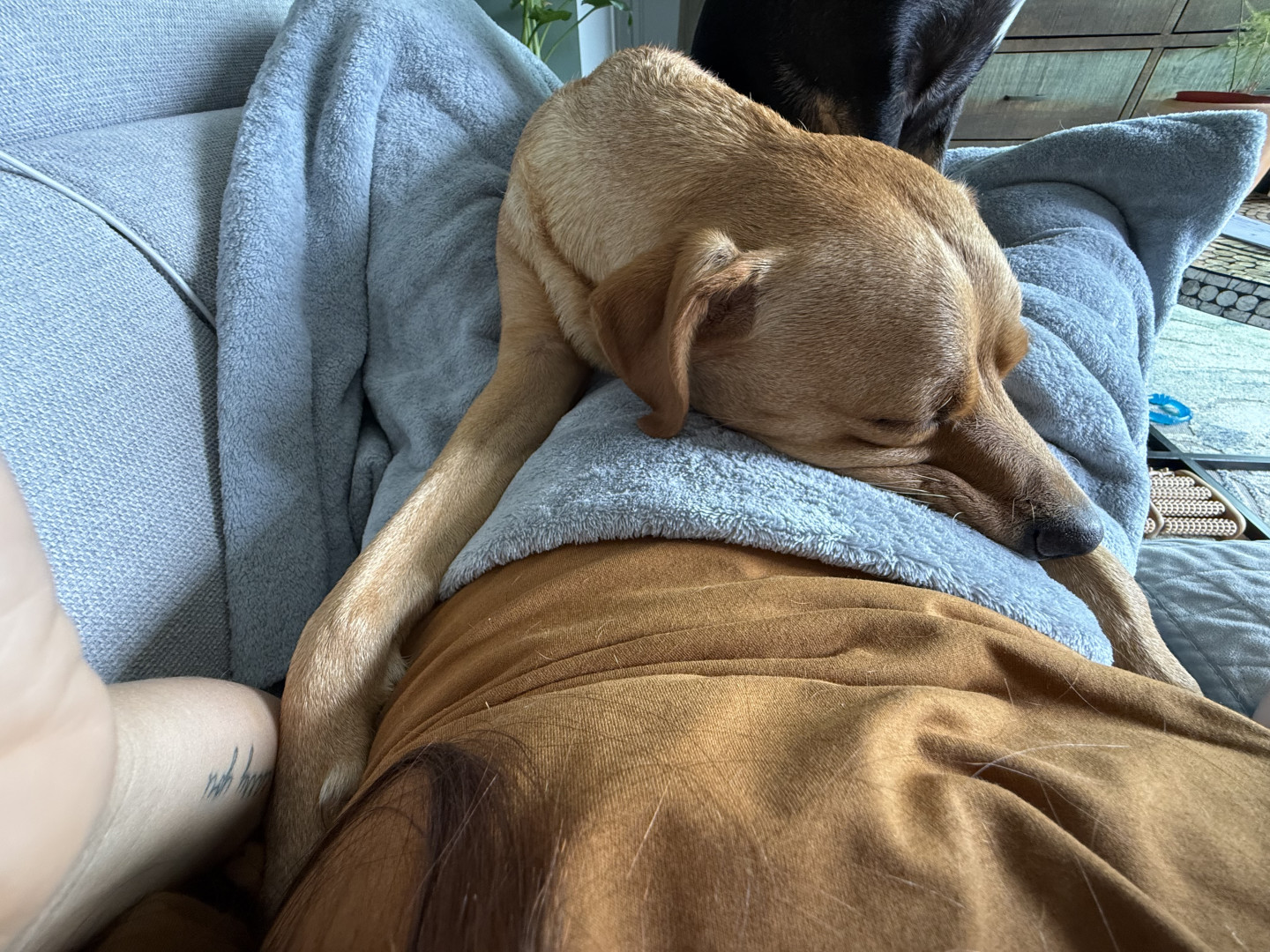 Presley is a mixed breed rescued from MX. He’s goofy, loving, protective and all of the above. He makes me laugh day in & out.