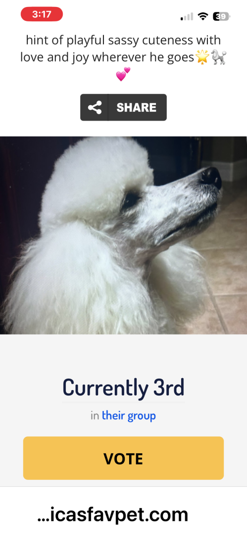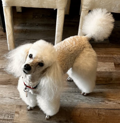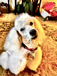 Prince Remy has a heart of gold 💛. He is the most lovable, intelligent poodle I’ve ever had by my side! He is my special ESA poodle. He adores making friends & they just absolutely love on him❣️ He spreads joy & love wherever he goes with his unique personality,. From his 'Bathroom Bandit' antics “tear it up”,to his charming dinner rituals, he is a pure 12-year-old joy. thriving 7 years post PDA! ! ABC7 Sarasota’s Star & hero from Tampa to Naples! He’s got it!❤️🩹🐩⭐️