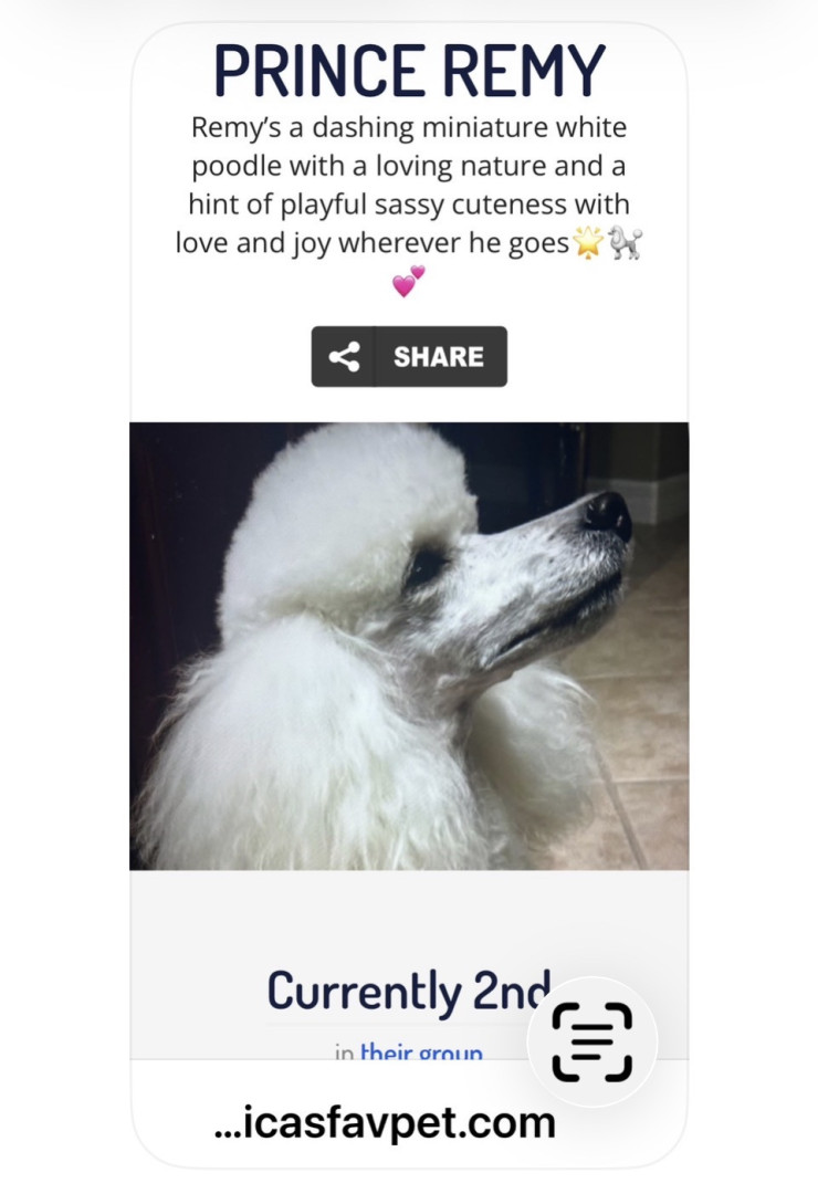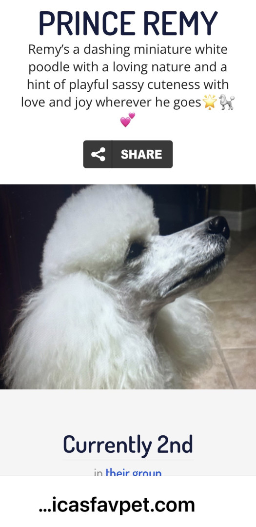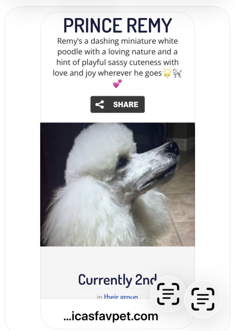 Prince Remy’s a dashing white miniature poodle with a loving nature & a hint of playful sassy cuteness & spreads joy wherever he goes🌟🐩💞