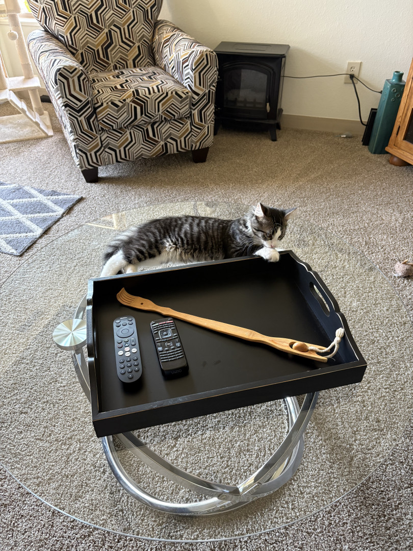 He loves scrunch balls, Christmas ornaments and all cat treats.