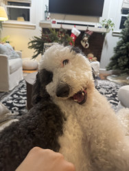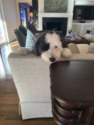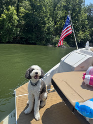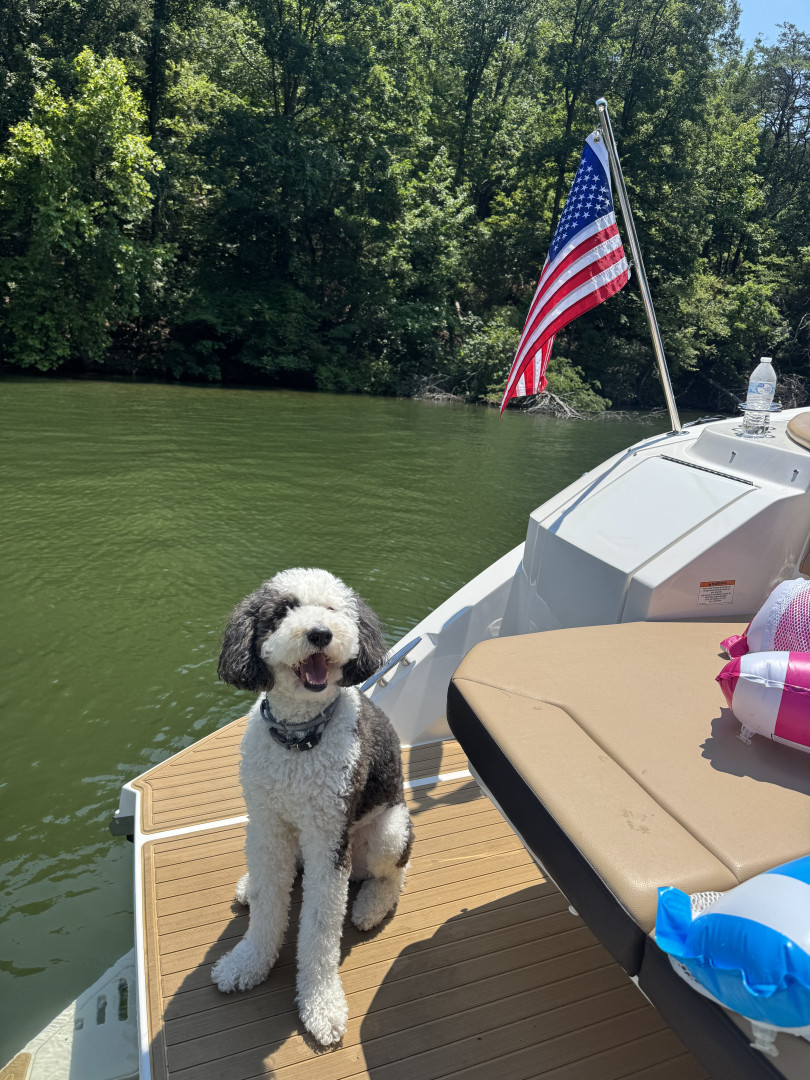 Our dog’s most unique quality is how he starts whining and wiggling with excitement the moment we pull down the street to our boat—he loves it so much. He does the exact same thing when we pull into TJ Maxx 😂 He’s a total hot commodity wherever we go, but he’s picky about strangers. You have to earn his trust by letting him lick your ear until you’re officially part of his pack. He’s a big sweetie who acts like a cat, naps on top of the couch, and at 50 pounds still believes he’s a lap dog