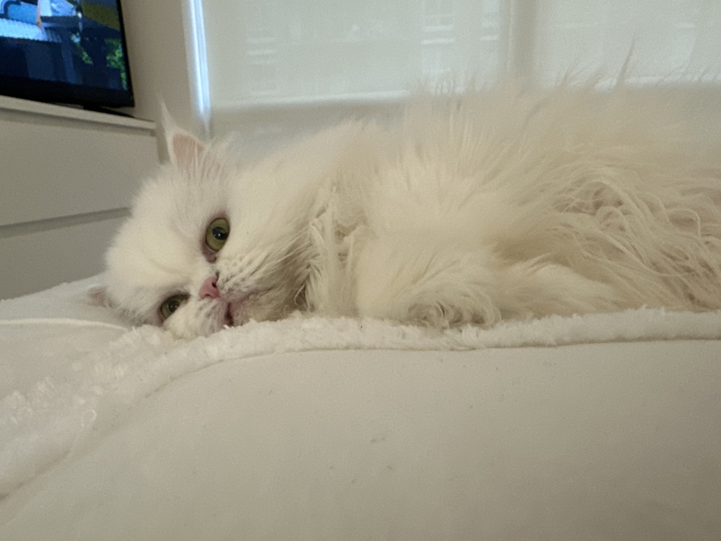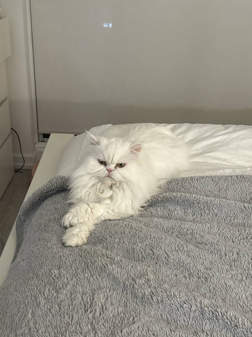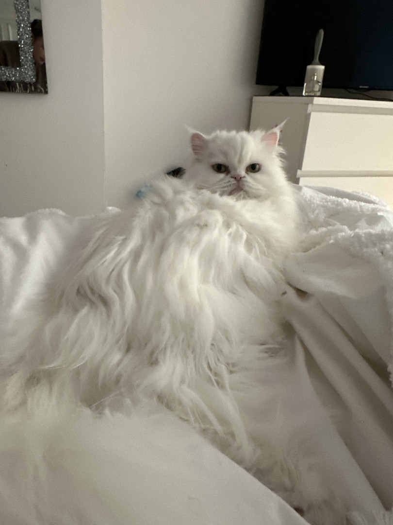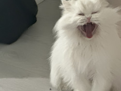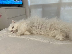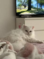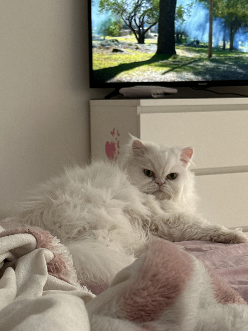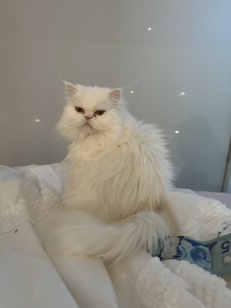 Princess is an outgoing but deaf Persian Himalayan. She walks on a leash and loves campfires and sour candy.