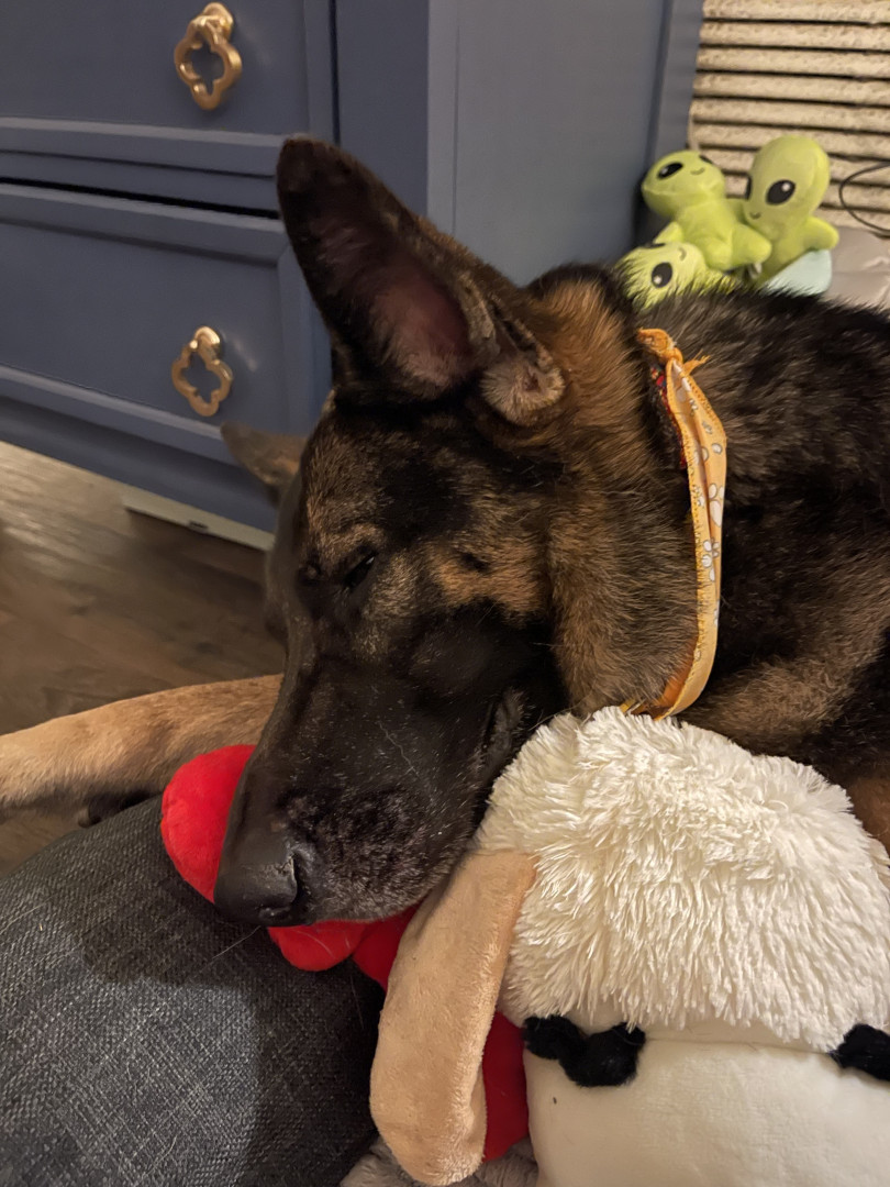 Being brought home from a shelter not too long ago she’s been a great addition to the family, she has thought us about patience and love and it might be silly to say but she is our love bug . My german shepherd is smart and caring , we are the luckiest family to have her .