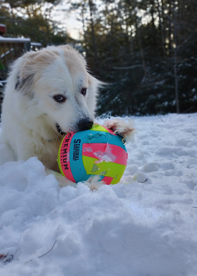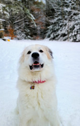 3 year old Great Pyrenees, loves the snow, loves attention, and of course food. Very sweet girl.