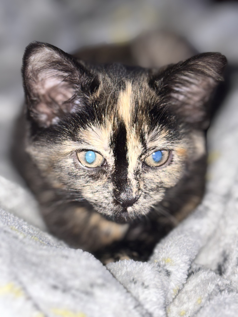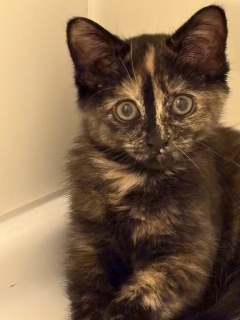 Putting is a little bundle of joy and a fireball all in one she puts the tortitude in Torti Cats