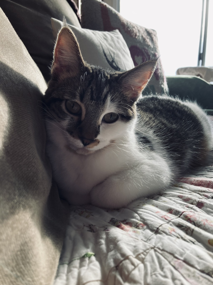Look at that face… Puddles, from day one, embodies love and acceptance. She is fierce in her loyalty to my other kitty, Daisy, at such a young age. Her life began with a car accident. Thankful and grateful for Puddles and the life she fought so hard to keep.