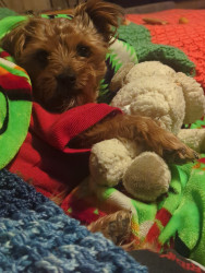 Pugsley is sweet energetic and has energy. He loves his Grinch toy