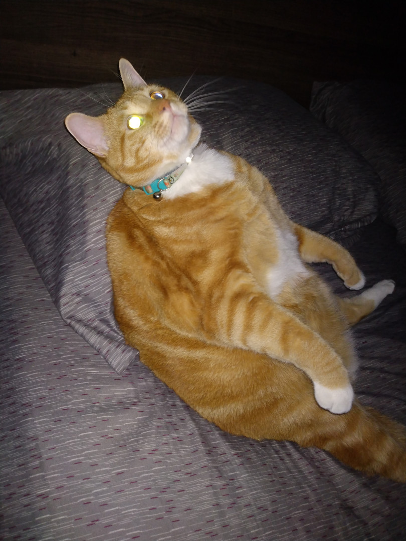 Pumpkin is three years old, came from a litter of five orange all male kittens. As you can see he is a big boy and well loved💙