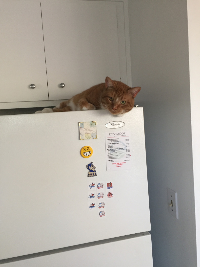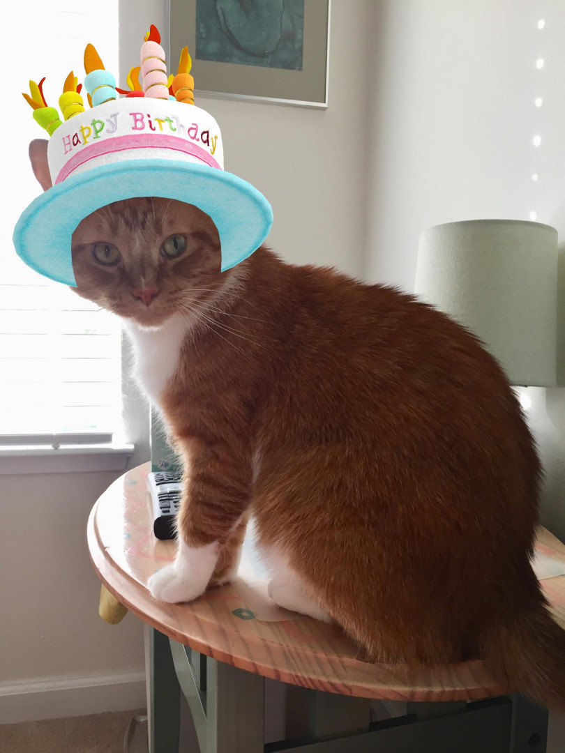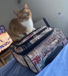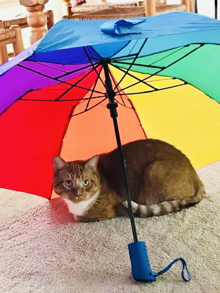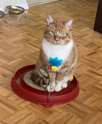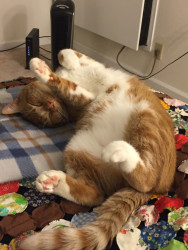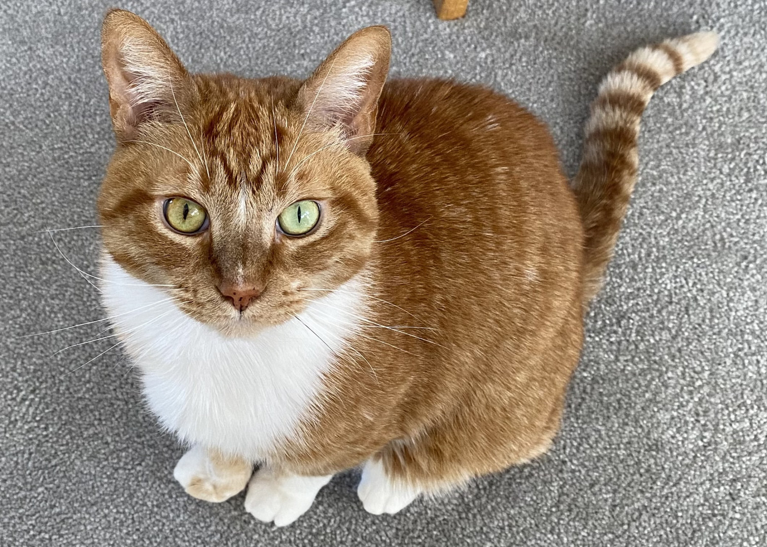 Orange and bold. Loving and precious. Rescued in 2016 in the San Francisco Bay Area. Adopted in 2017. Now lives in Canada. Most content boy.