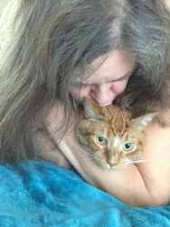 Pumpkin’s most unique quality is his ability to know when a human in his presence needs comfort. It is simply amazing. He will go right up to someone, bash against them, and purr. His Mommy has stage IV metastatic cancer, and he is her constant companion… lying tucked into her all night. It is the most beautiful, precious thing. He is simply selfless.