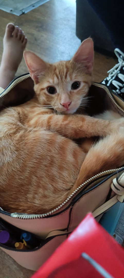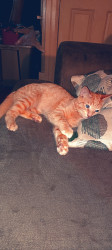 Pumpkin is a crazy kitten that will attack you legs and feet on minute and want loving and cuddles the next. He definitely tugs your heart