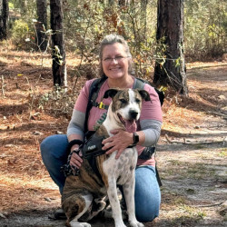 He’s such a sweet gentle soul who loves children. He loves to run with my grandies or outrun the 4-wheeler. He climbs the old oak tree chasing squirrels. He’s got spirit!