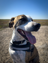 High spirited and super friendly. Loves kids. Loves to outrun the 4-wheeler at the lease. Loves hiking with us.