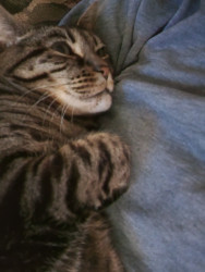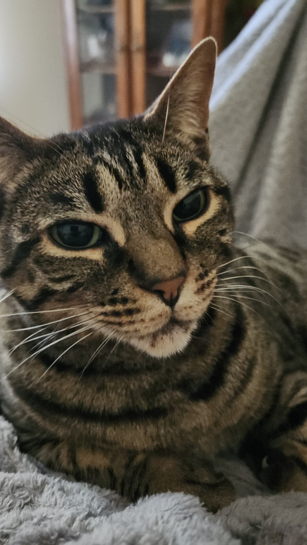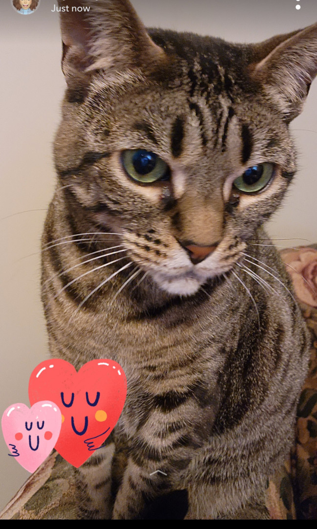 Puss is 12 years old and loves to snuggle so much. She loves her little mouse toys and gazing out the window at cars and people going by.