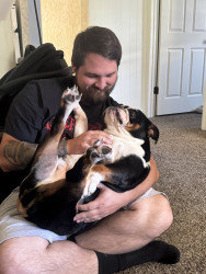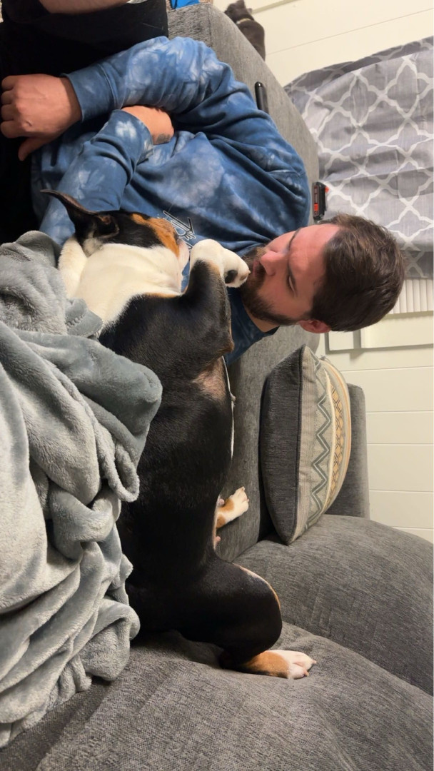Storm is a lazy cuddle bug! She loves when her dad comes home! Loves her butt scratches!