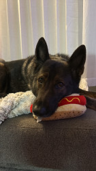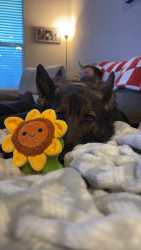 Ragna’s favorite toy is her stuffed hotdog or her stuffed flower called her “lovey”.