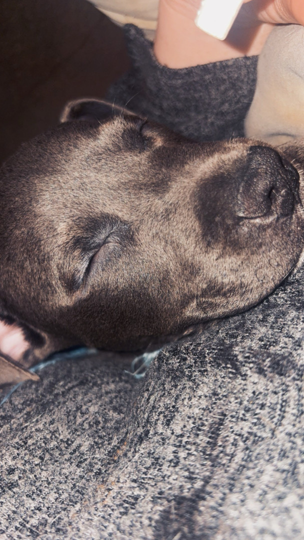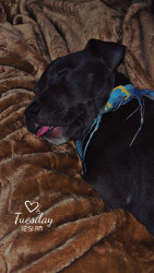 Rain is a very sweet Pittbull&Rottweiler mix. She was just at the animal hospital due to hurting her leg. She still trys to play and jump❤️