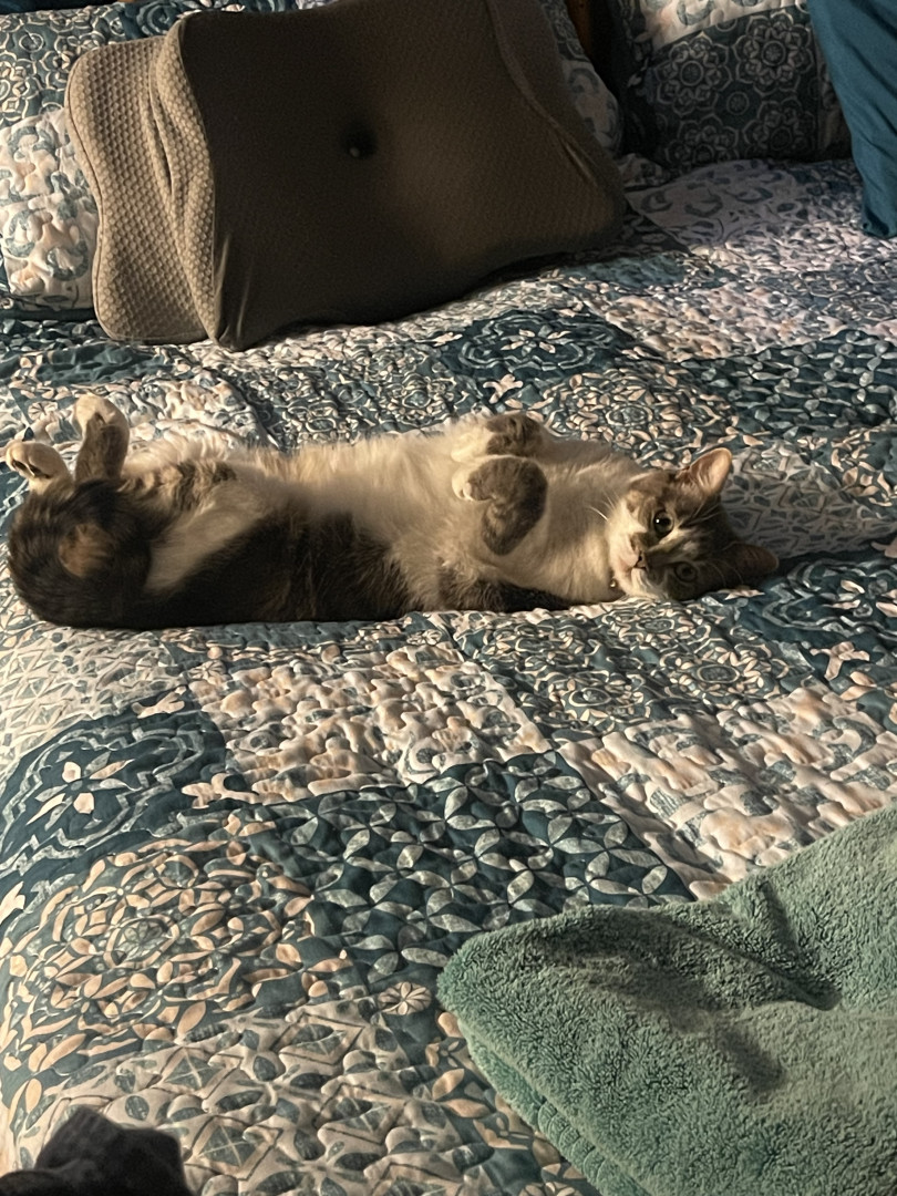 Rainbow loves belly rubs as you can tell by a lot of her pictures. She likes laying on a cozy blanket and taking long naps.