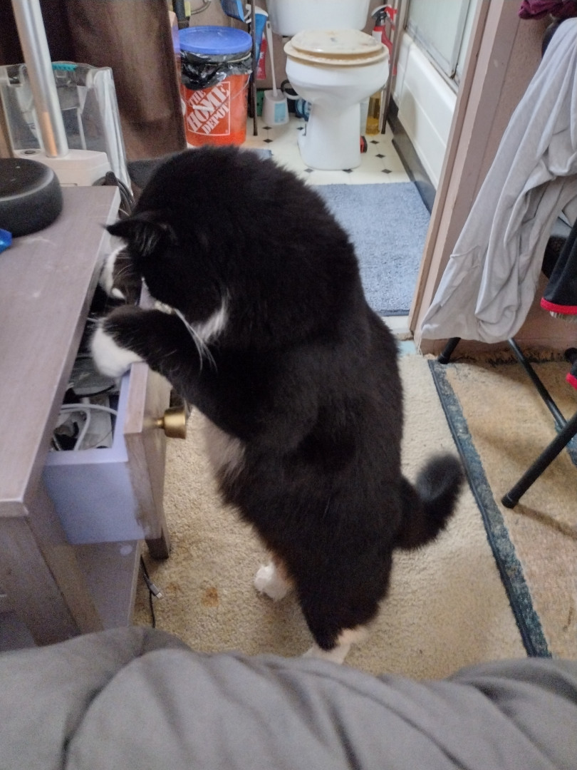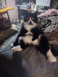 I feel my girl Missy who passed last year lead me to this boy He is a very smart boy He gives kisses when asked for love He will give paw for each luck of his churo treat He has a very handsome tuxedo