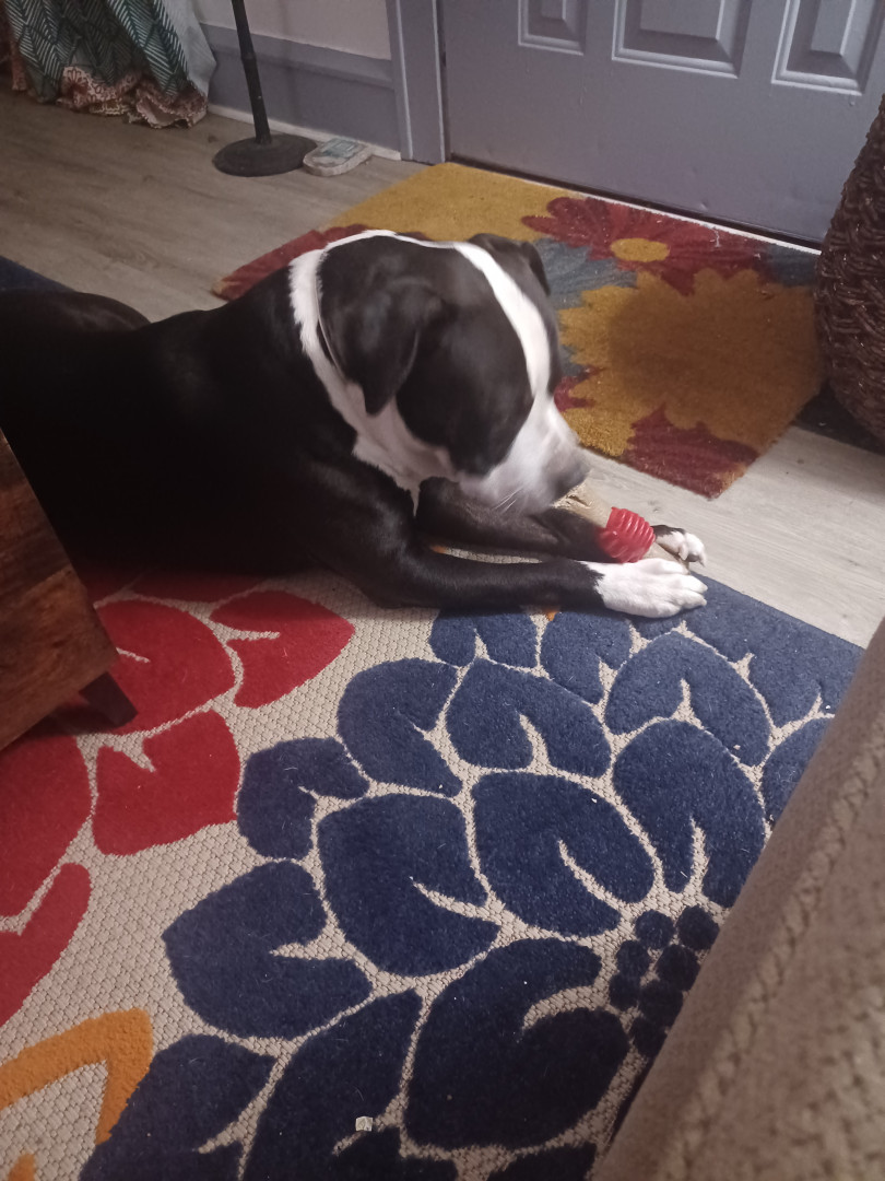 His favorite treats are deer antlers and milkbones.