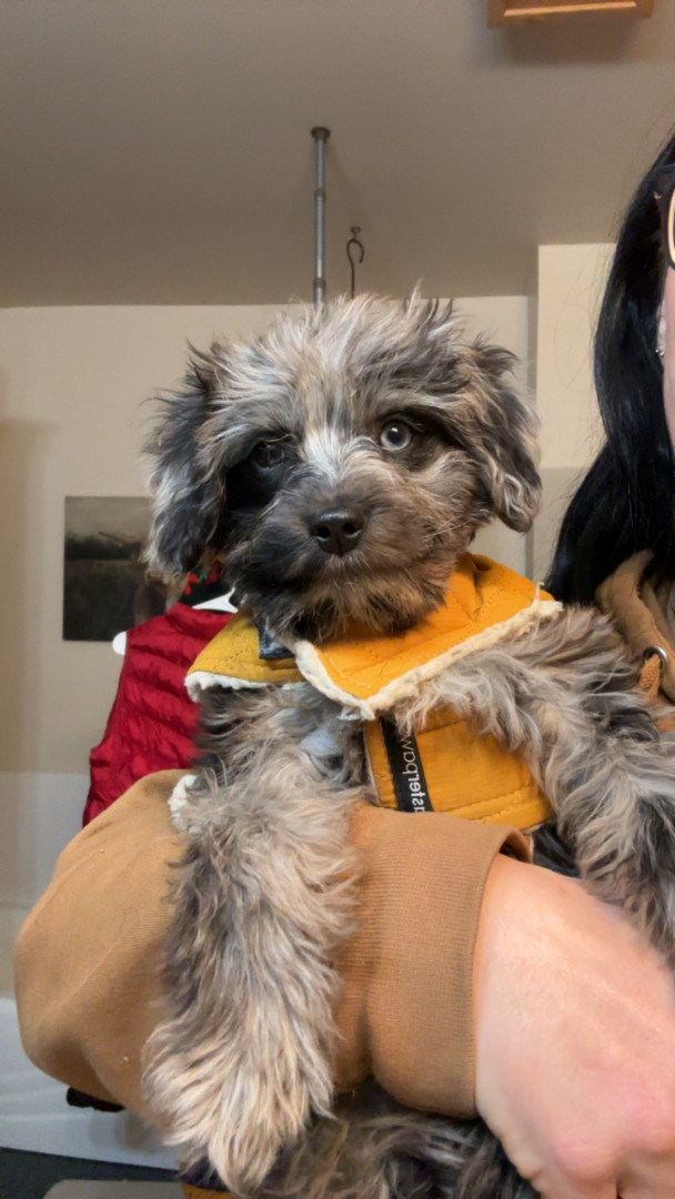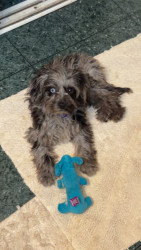 Meet Raya—our blue merle Cavapoo with unmatched cuteness and the most fun, happy personality ever!