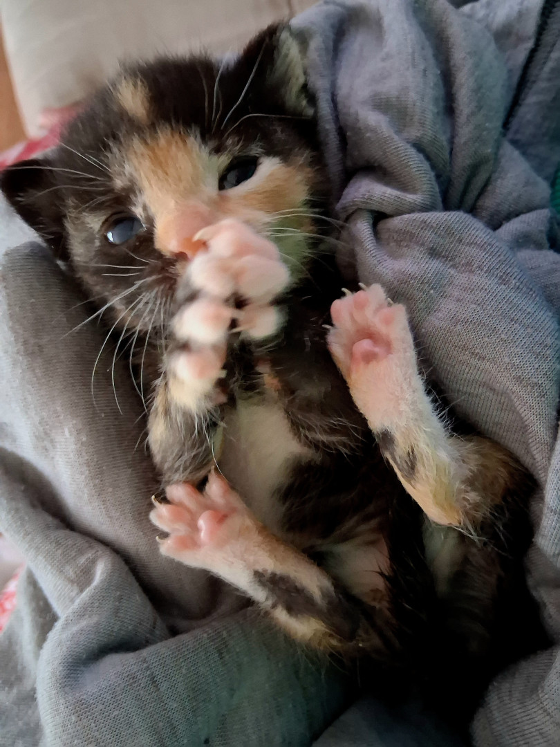 Rayne (Rain) is a 5 month old spicy kittie who is rambunctious, loving, very playful, very curious about everything & is a food enthusiast.