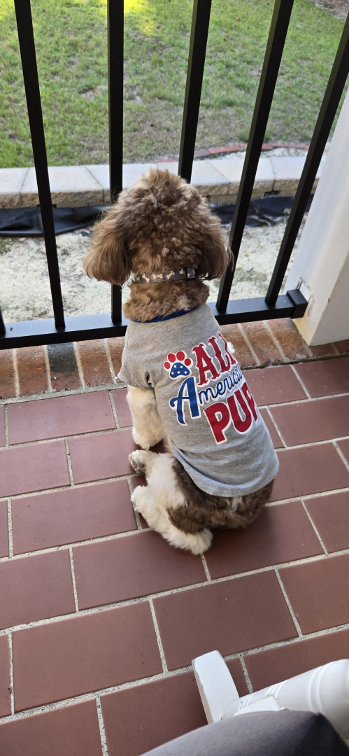 Razzle Dazzle's most unique quality is that he is such a happy fur baby! He wags is little tail & wiggles his but when our friends & family come to visit! He just loves everyone & all other dogs! A few more unique qualities that Razzle Dazzle has is his long eye lashes, brown nose, and brown eyes! He is just so cute!