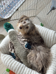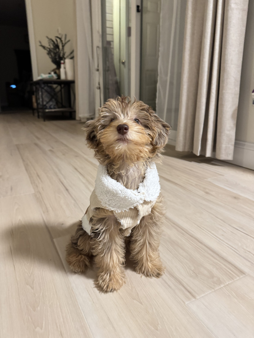 Reece should be America’s favorite because she’s peak puppy energy in the cutest way. She’s fluffy, curious, and always finding something new to investigate. Everything is exciting to her—new sounds, toys, people—and she approaches it all with sweetness and zero fear. Whether she’s bouncing around or sitting there looking proud of herself for no reason, she makes life more fun just by being a puppy.