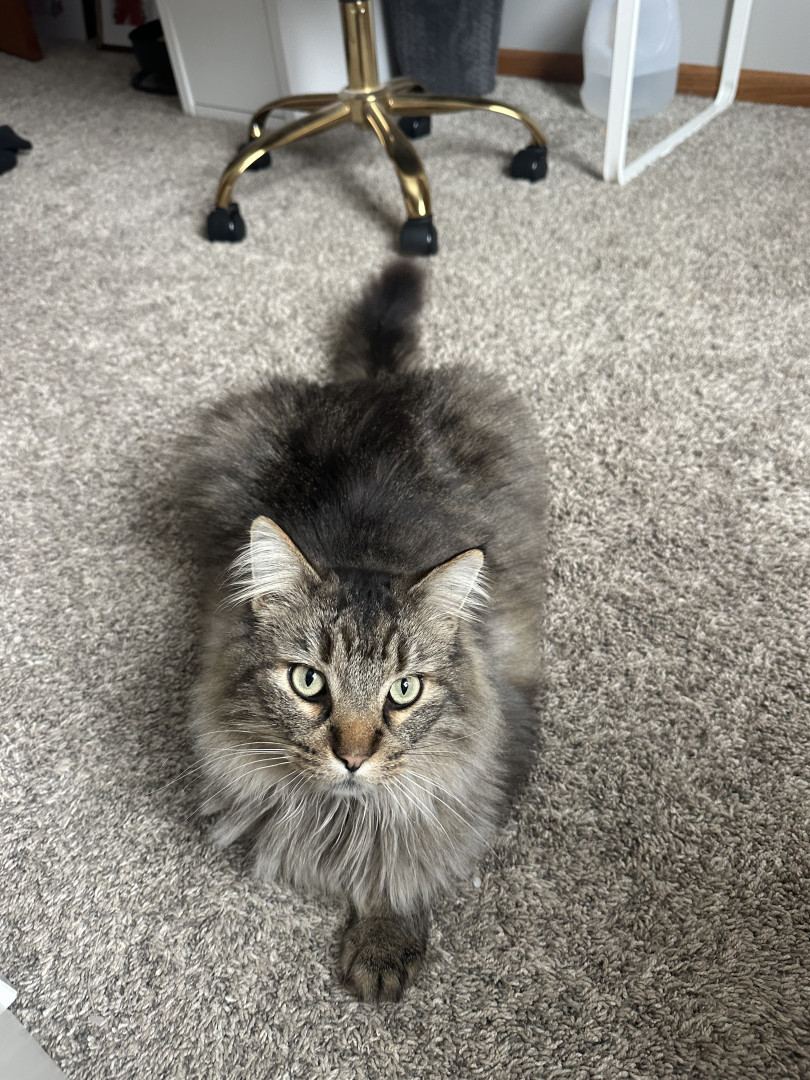 Reggie is a 4 year old Maine coon cat. Reggie loves everything from running around outside to cuddling up on cold winter evening.