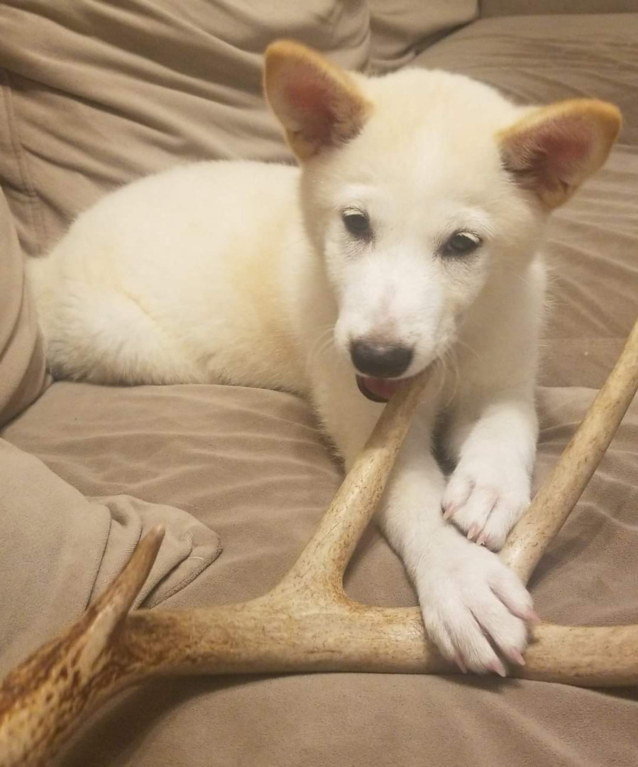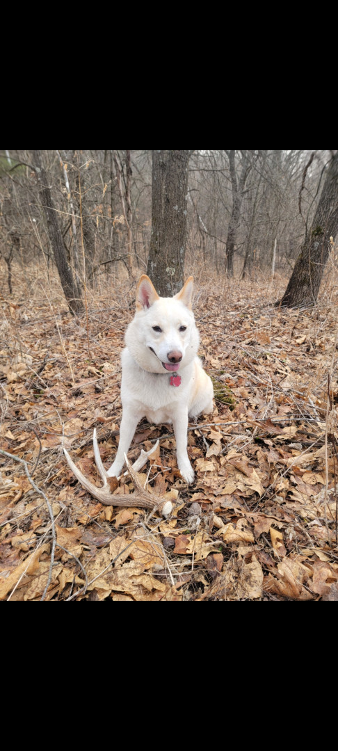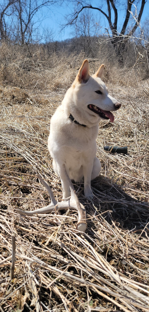 She is trained to find deer antlers and track blood trails and she is very good at it.