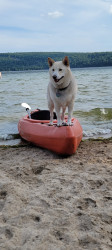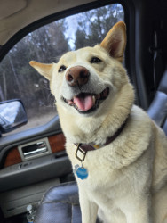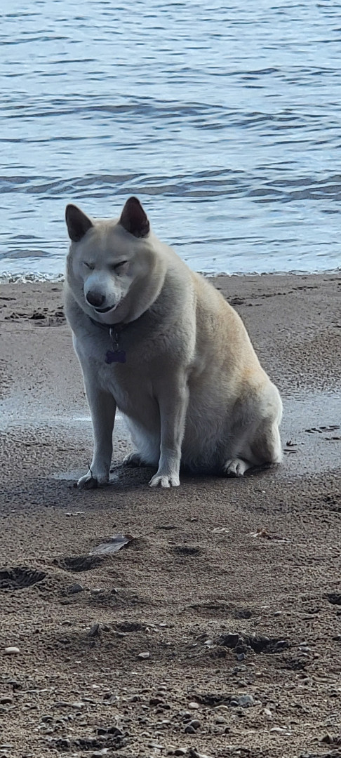 She is a shiba inu. She can be very talkative at times. She knows lots of words and is very smart
