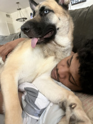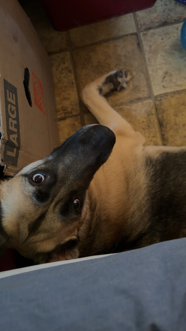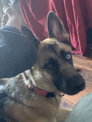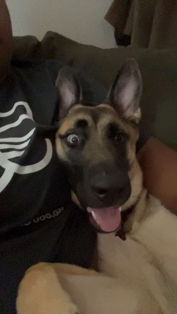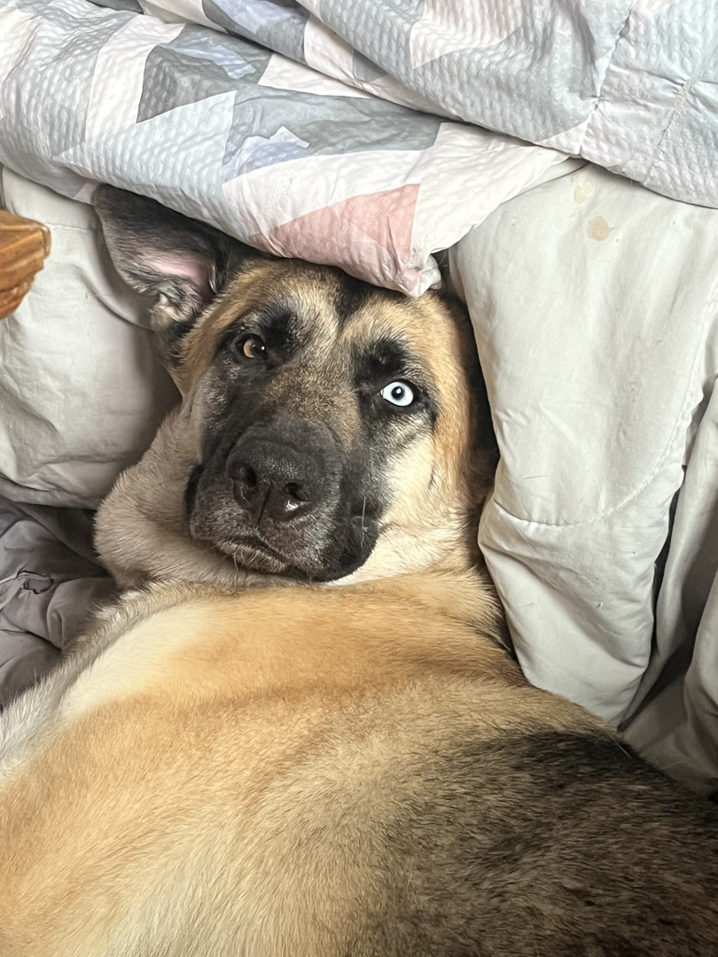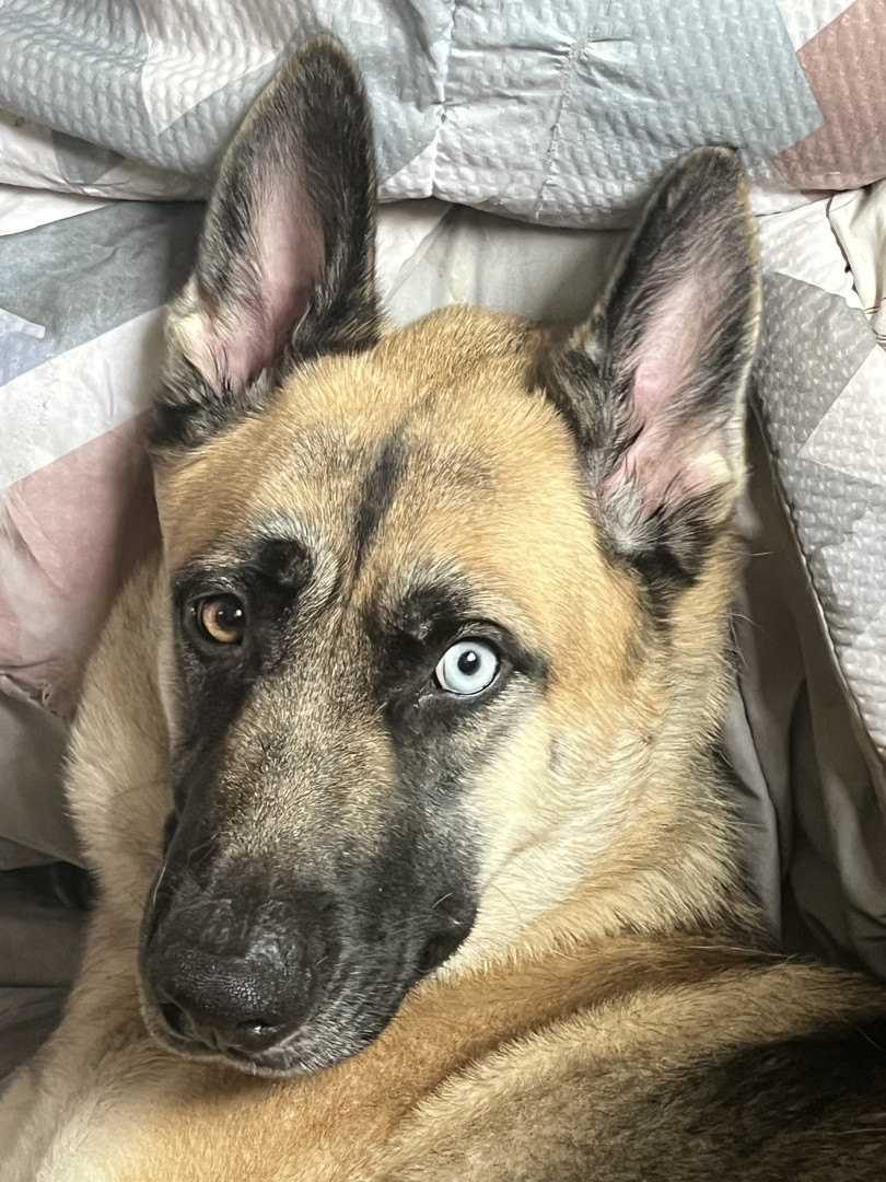 This is Remi as in Remi Martin. She is a German Shepherd husky mix with very unique characteristics.