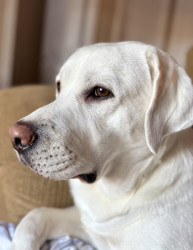 Remi is a big white loveable lab she loves when kids come to visit, she is really good with children with special needs