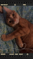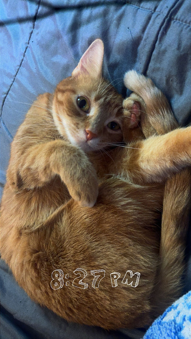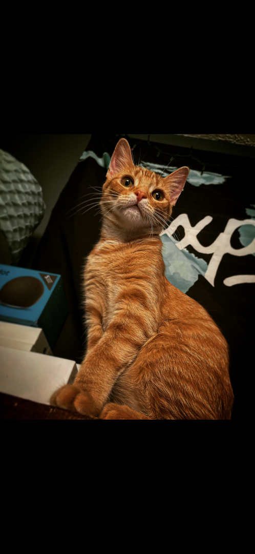 Remi’s an orange tabby girl with a wild side bold, curious, and full of attitude. She’s sweet when she wants to be, fearless when it counts, and impossible not to love. America could use more cats with her confidence and charm.