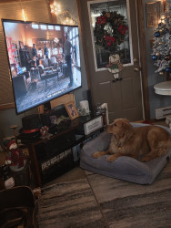 His ability to watch TV His first encounter was at 3 months old we discovered as we had a movie on with horses and he followed them across the screen until they disappeared and he tried to figure out just where they went? He actually went up into the next room looking, it was quite funny to witness. He mostly enjoys watching children, and any movie that tells a story or plays music. At bedtime I play soothing ocean music on the TV, so he knows it's time to go to sleep. He's a gentle giant.