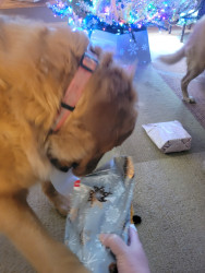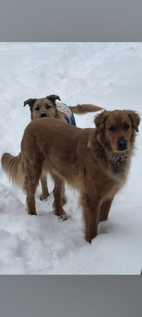 Receive Text UpdatesRemington, a.k.a. our Big Red loves the colder temps. He enjoys playing in the snow, although he will stay outside in the summer with his family, or sit poolside if where we are. As he doesn't really have a favorite go- to dog toy, he'd prefer an empty plastic jug of any kind, or a stick from our many trees. He loves to help us pick up sticks and play in the leaves in the fall. his favorite treat is a collagen chew or chicken Jerky!