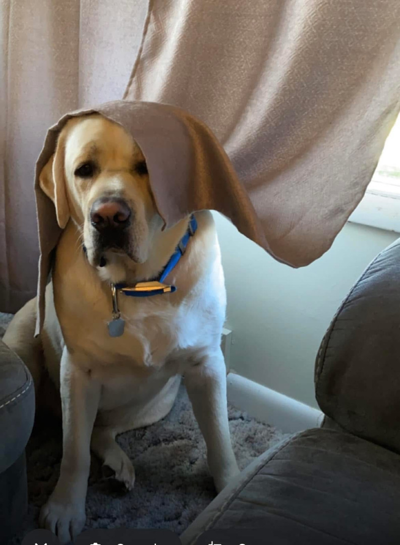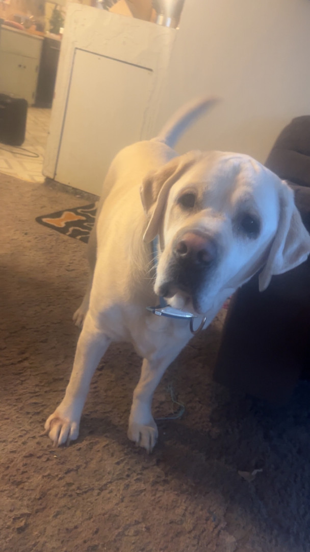 Remi is a gentle giant. He’s around 110-120 lbs. We’ve been losing a little weight. He’s talkative. He talks to each one of us in the morning, theirs 6 of us. He is so happy and brings pure Joy to all of us. He makes all feel so loved.