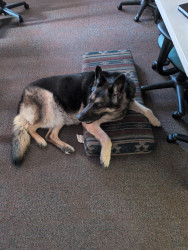 She loves going places even though she can be destructive at times. She has gone thru a double pain window, ate multiple door knobs, at the bottom of a door, eaten through a bungie cord, and a garage door sensor