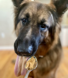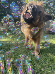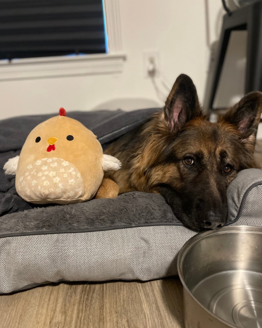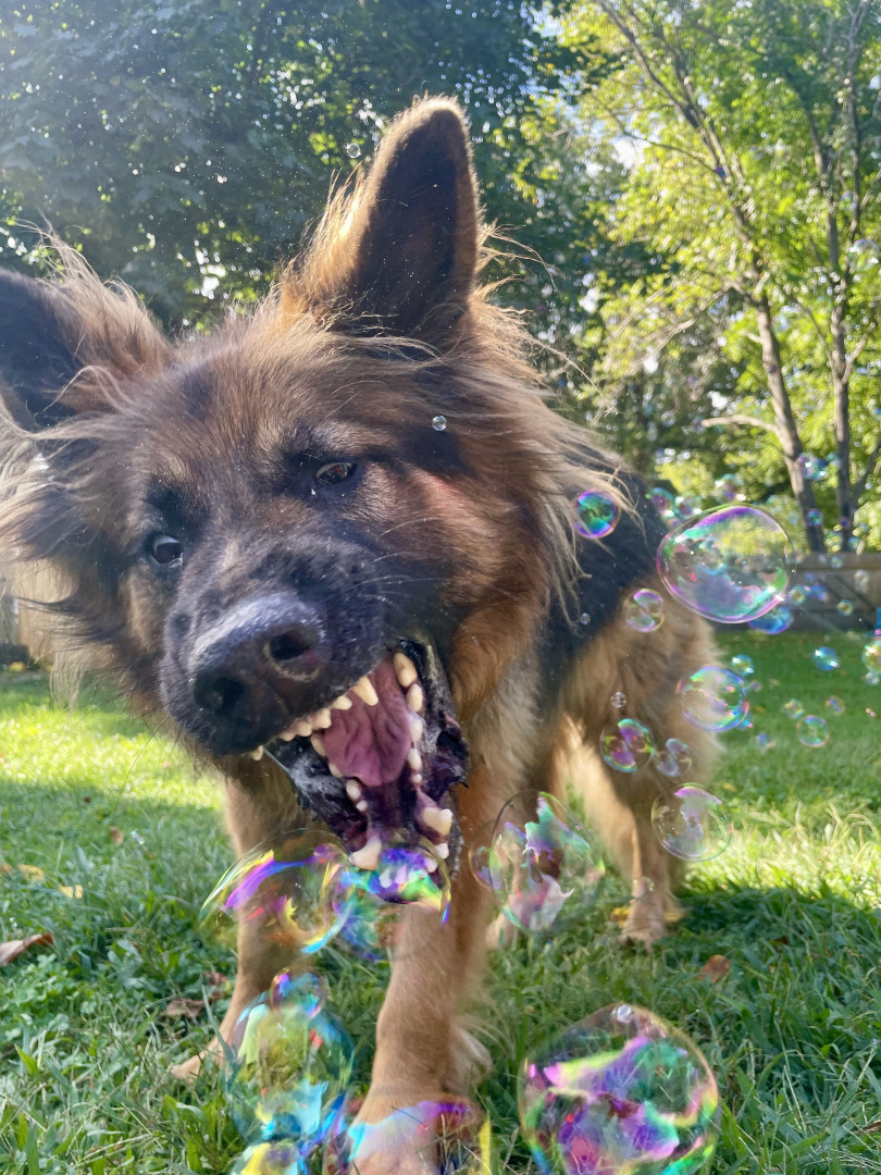 Remington is a 6 year old long haired German shepherd. He loves to cuddle, eat green apples, play with bubbles & tennis balls!