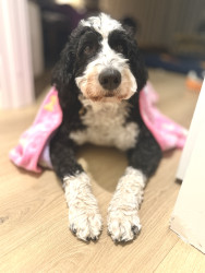 After years as a devoted mama, 6-year-old Remy the F1 Bernedoodle is finally home, where love and comfort come first.