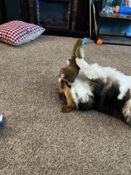 He is the most loving pet ever. He follows me everywhere and leads me by biting my pant leg. He’s a good boy and learns fast. He’s a snuggle