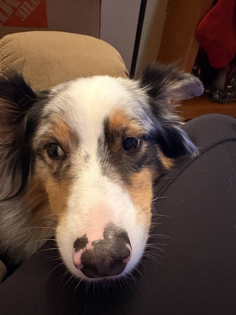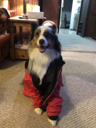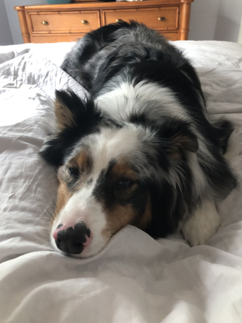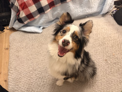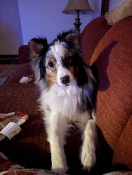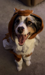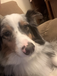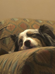 Despite Remys beautiful blue and brown eyes. Remy has a half bitten off ear and a cut foot from when he was young puppy. When Remy was younger he got stuck in a fence in an animals pen and was attacked by the animal when at the breeding farm he was bred at as young pup. Which gave Remy trauma and anxiety when our family got him at 9 months old.