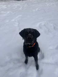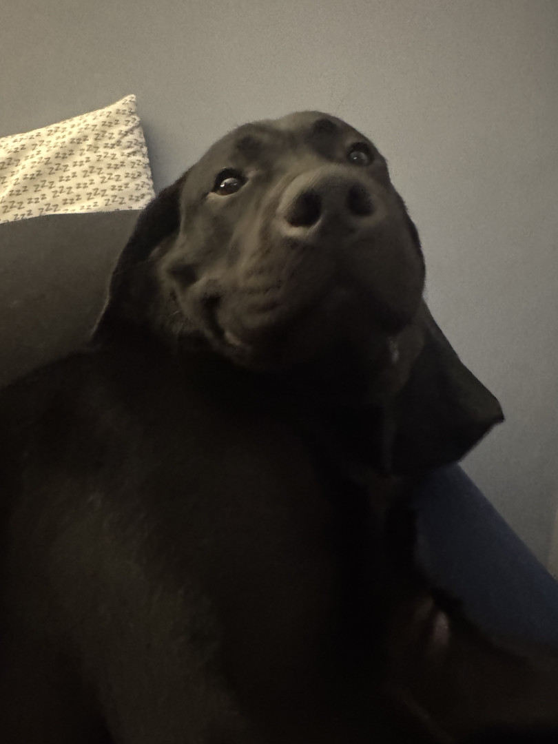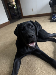 He’s a fun loving dog and loves everyone! He’s the bestest boy and has quite the personality. He’s your typical black labrador!