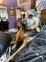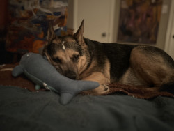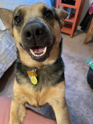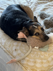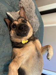Rey is a sweet, energetic and playful girl who loves to spend time with her human. She is a notorious sock thief!