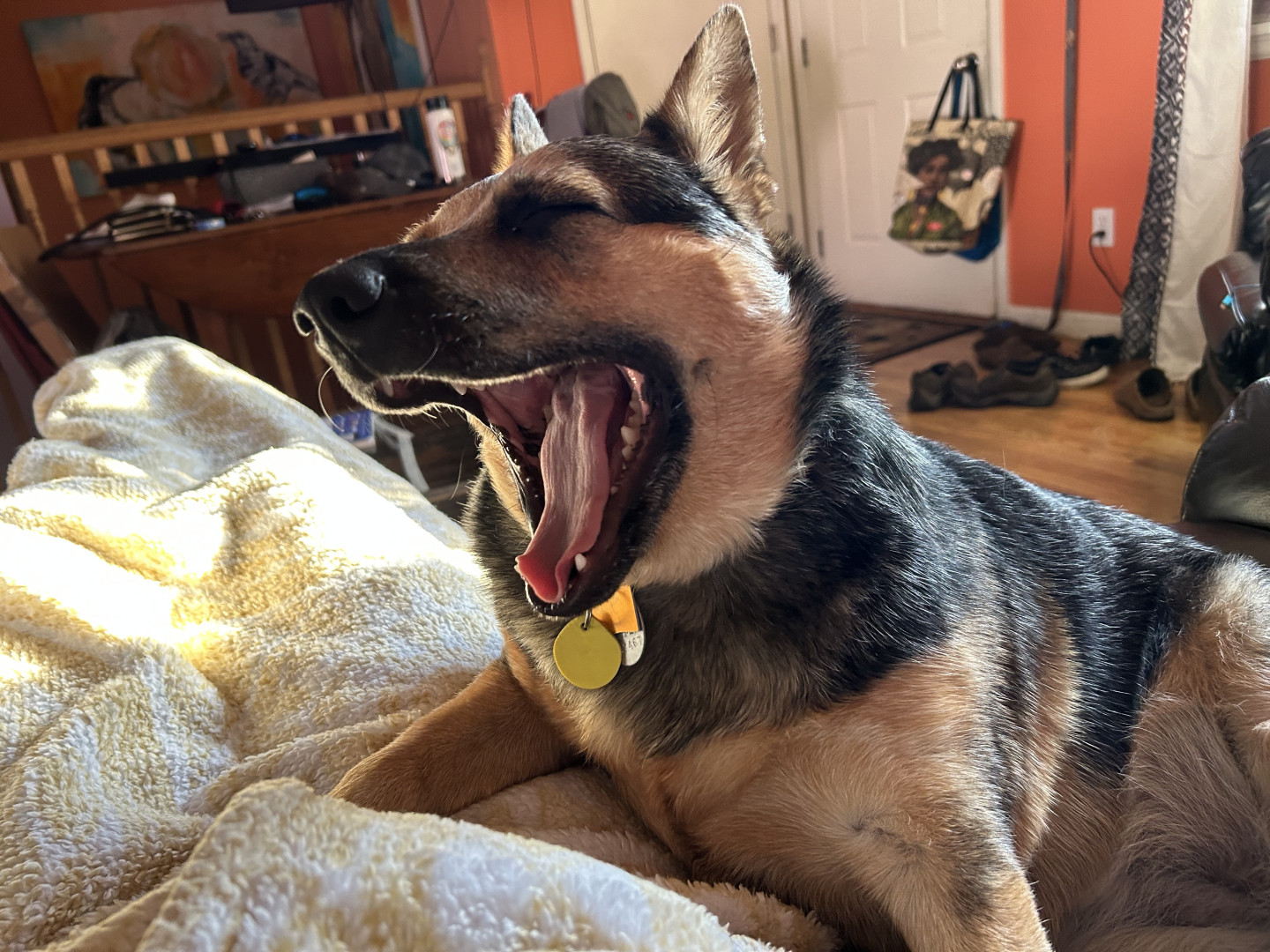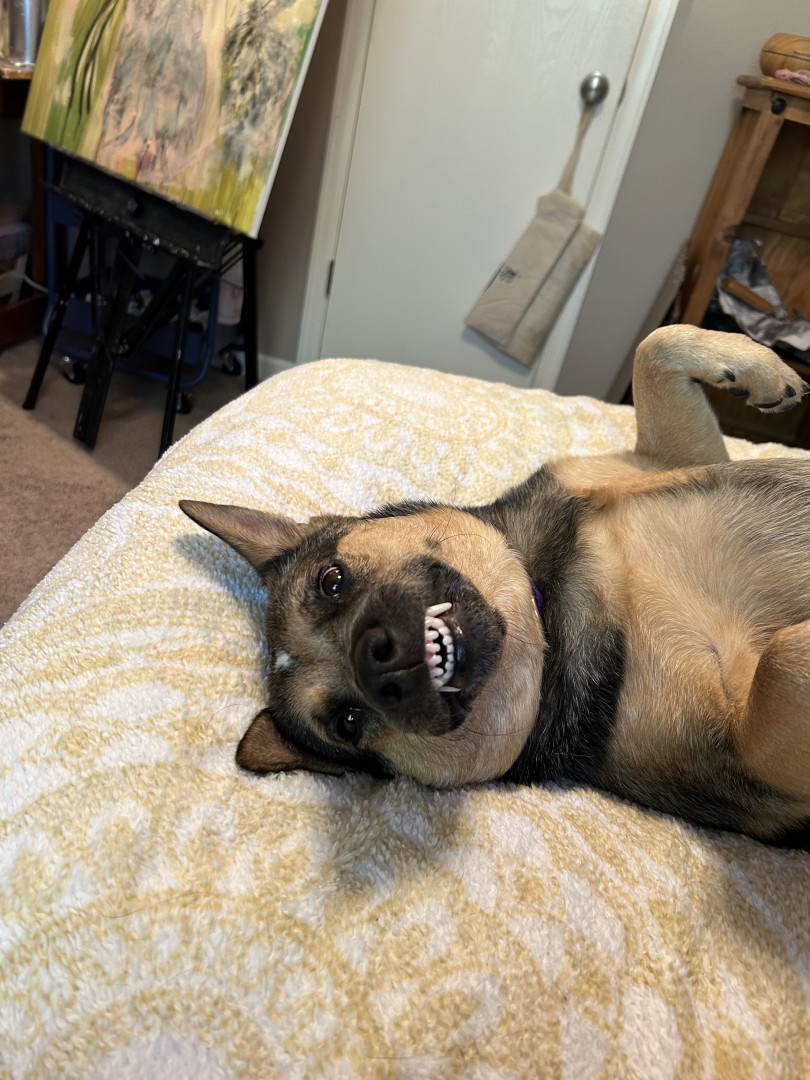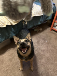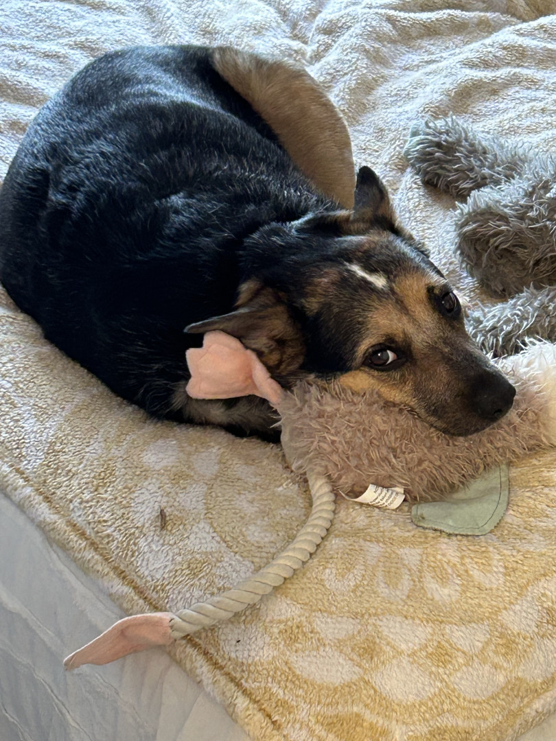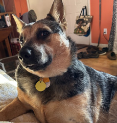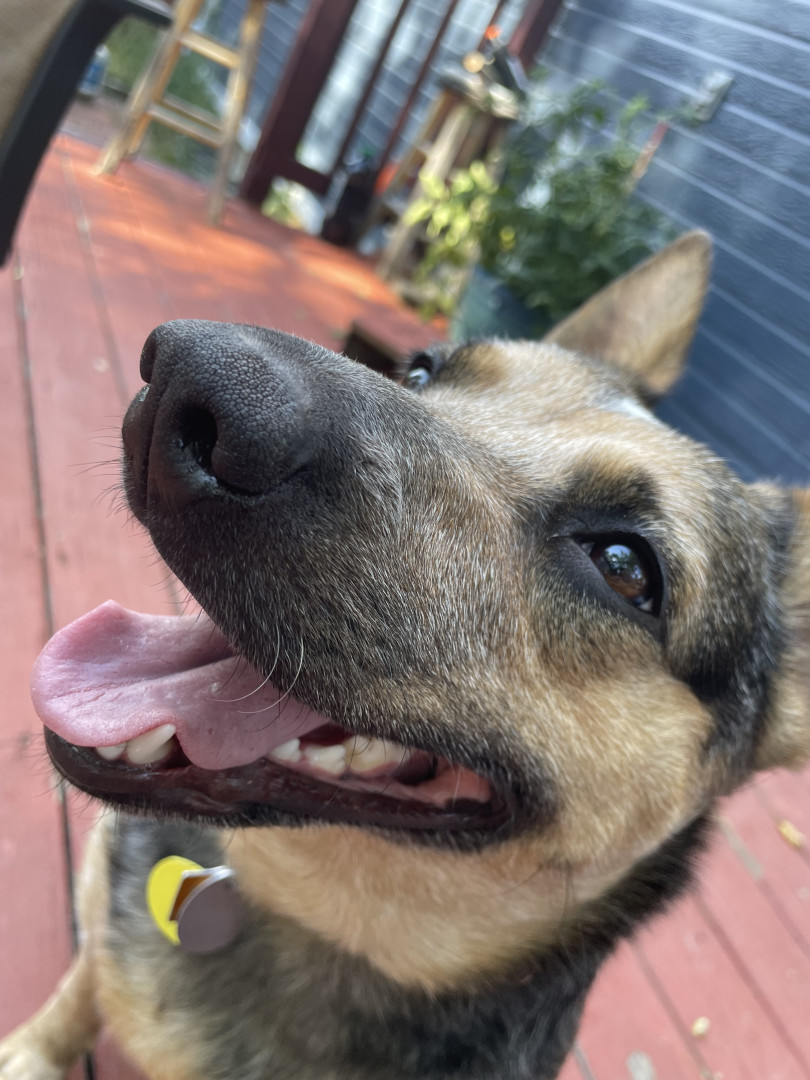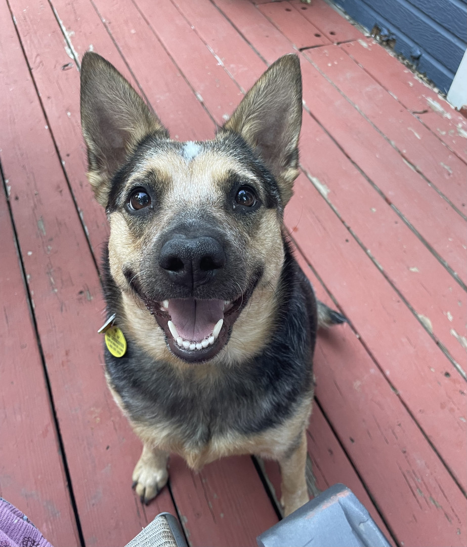 While I don’t know exactly what she’s a mix of, Rey has the sassiness and energy of her Blue Heeler lineage, the loyalty of a German Shepherd, talkativeness of a Husky, and the short legs of a Corgi! Her personality from these traits really makes her a lovable and quirky girl.