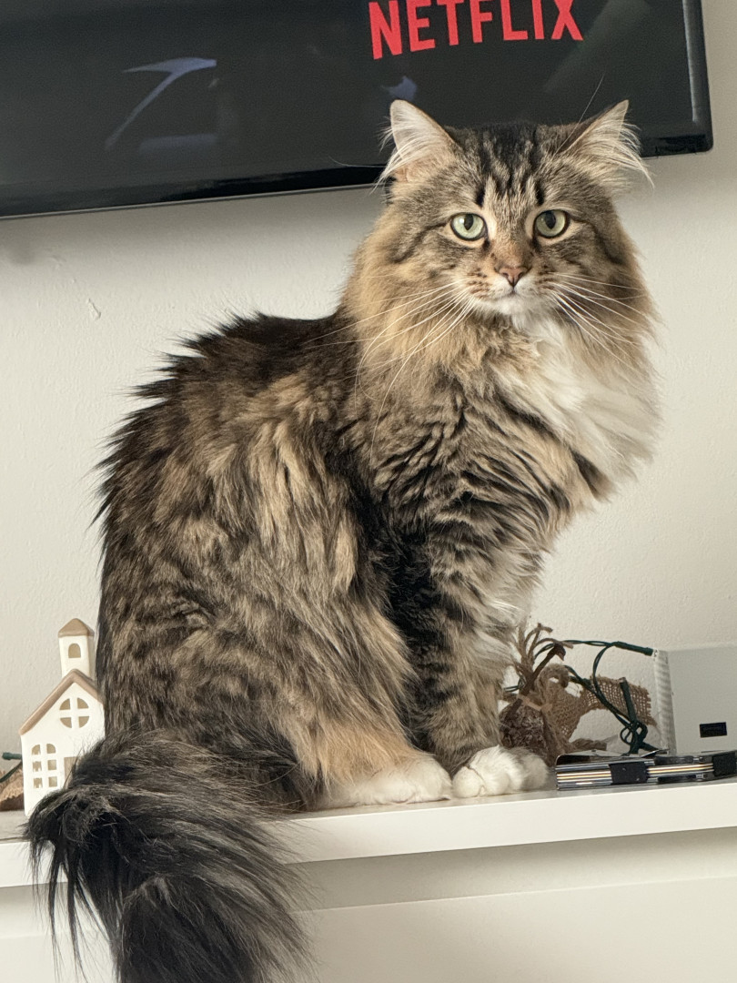 He is really just very loyal to us. He waits at the door for us when we get home, he’s kind of like a dog in that sense. He always wants to be on top of someone cuddling.