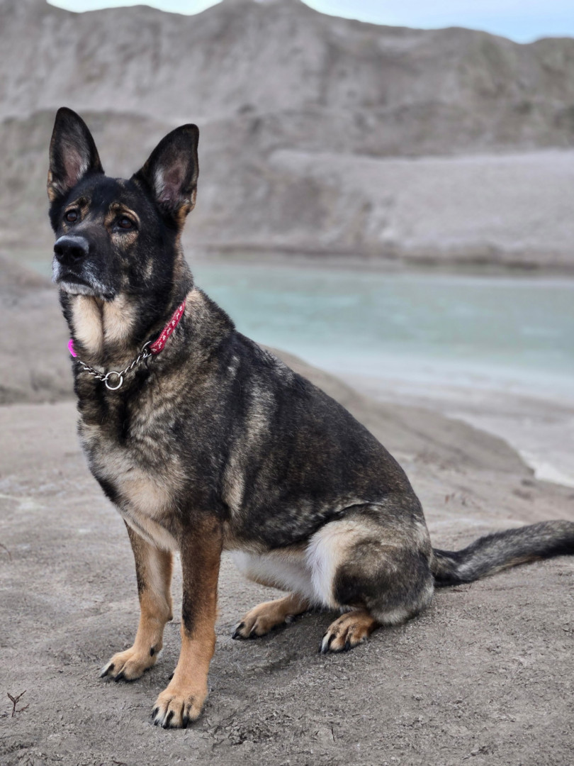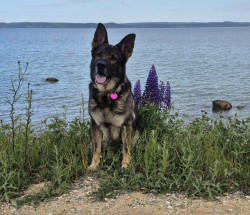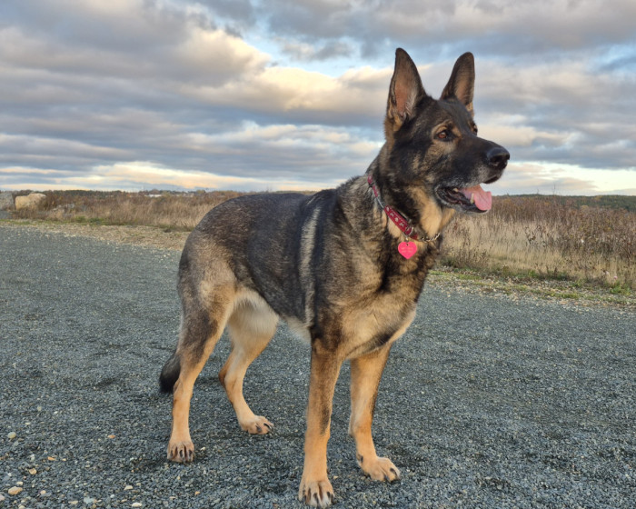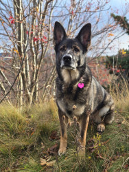 Riesa is a Sable German Shepherd. She is the sweetest girl who loves runs on the beach and sticks. She's happiest with her humans.