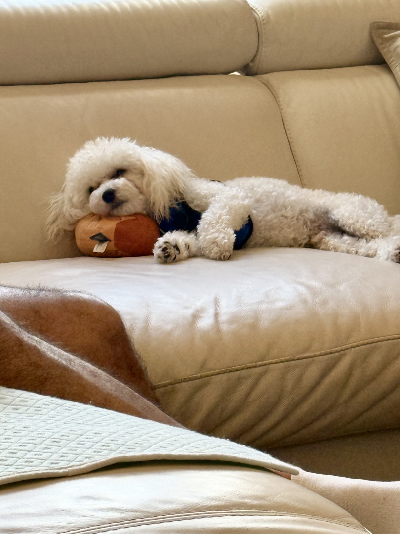 Rigatoni is Fun,Exciting, sweet and loving! Very Mischievous. Loves kids other dogs and people too. You never know what he will do next!