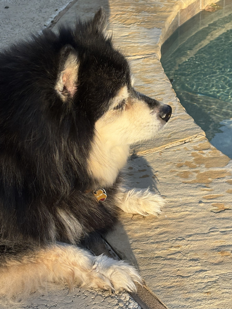 Most people don’t understand how dogs like Riika think. She’s not an ordinary dog. She doesn’t retrieve or play fetch. She sleeps all night in the bathtub. She’s a Finnish Lapphund, a dog of the Northern Lights. People wouldn’t think she’d want to swim, especially with her long, thick fur, but she loves it! She’s so smart and picks up new tricks instantly, talks to me as if human through different levels of barks. More than anything, she loves to be loved. Not cuddled, but loved.