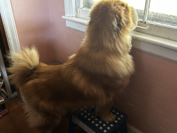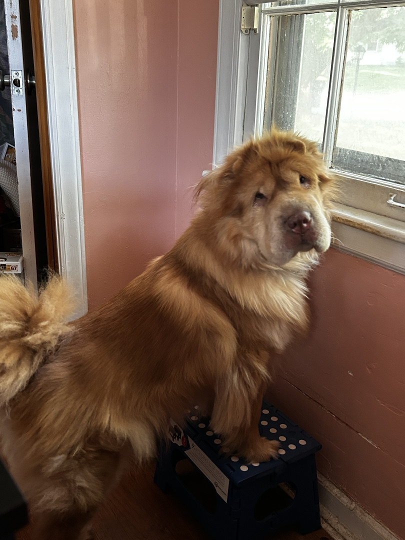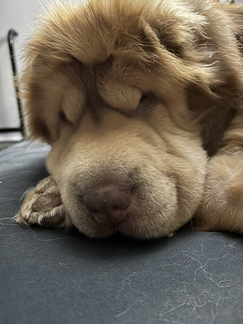 She’s been called a bear and a baby lion. She is a furry Bear Coat Shar Pei. The wrinkles are there by they’re hiding under all that fur.